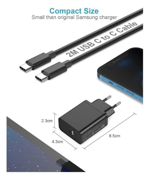 25W rychlá nabíječka USB C s 2 m nabíjecím kabelem USB-C na USB-C
