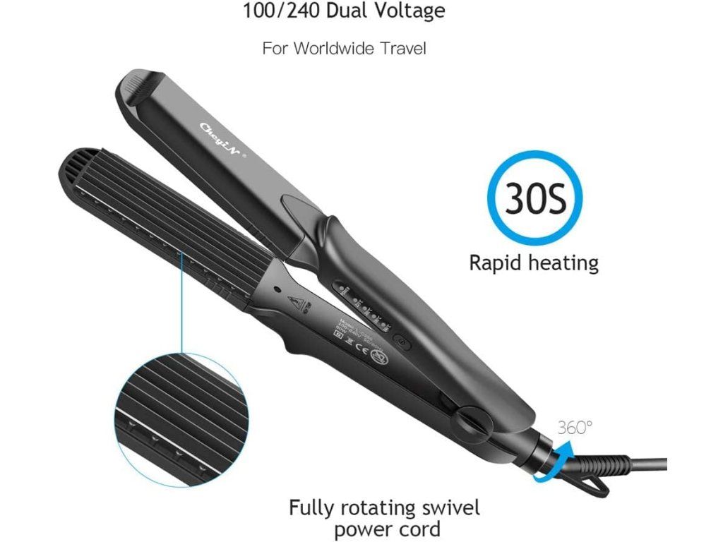 2v1 Žehlička a krepovačka na vlasy se širokou nahřívací plochou - černá