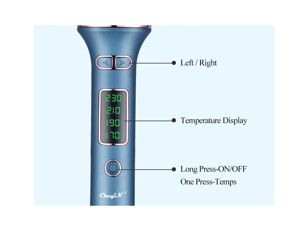 Systém jednotlačítkového natočení umožňuje vytvářet dokonalé lokny bez zkušeností. Stačí vložit pramen vlasů na jednu stranu hlavice a podržet příslušné tlačítko. Kulma se sama postará o zbytek.