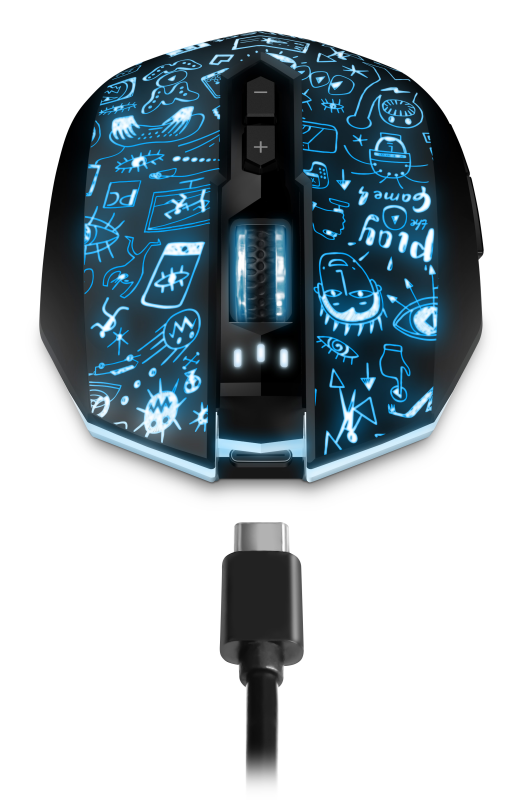Výkonná herní myš Connect IT Doodle 2 Pro s podsvícením, 7 tlačítky, přesným senzorem až 4800 DPI a technologií AutoPowerSave. Nabíjecí baterie, teflonové pojezdy a programovatelný software pro profesionální hráče i kreativce.