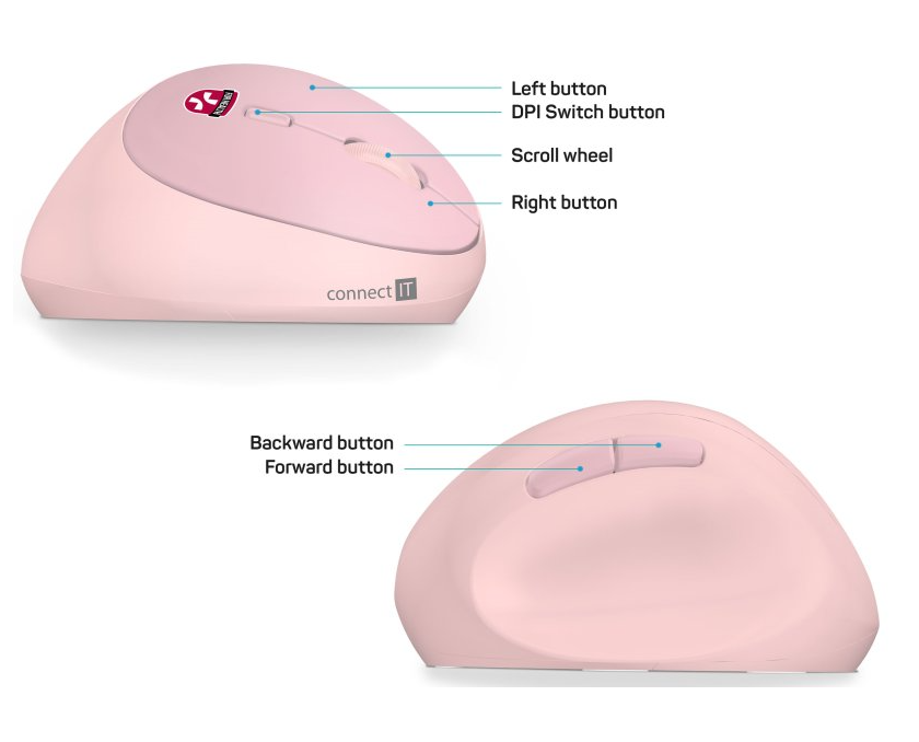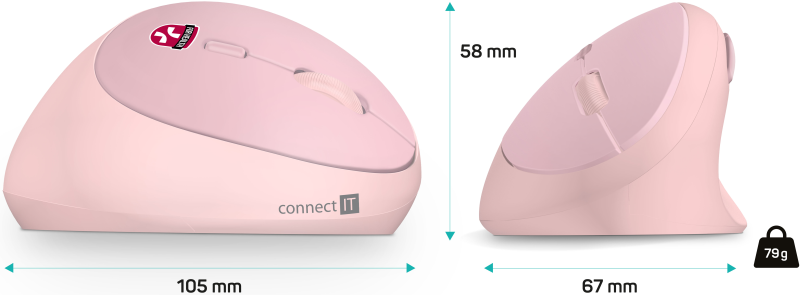 Connect IT For Health Ergonomická vertikální bezdrátová myš – růžová