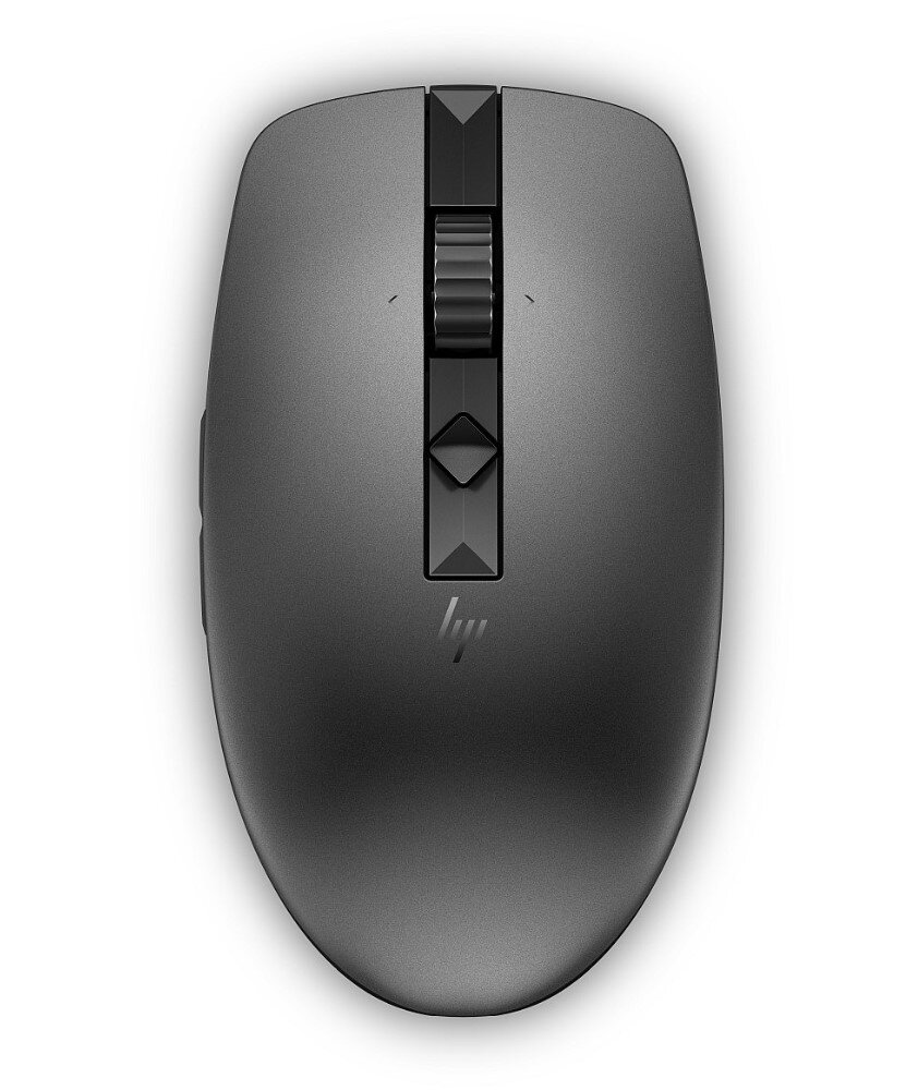 Elegantní bezdrátová myš HP 635M s připojením až ke třem zařízením, rozlišením 3000 dpi, senzorem pro práci i na skle a přizpůsobitelnými tlačítky pro profesionální aplikace – ideální volba pro kreativce.