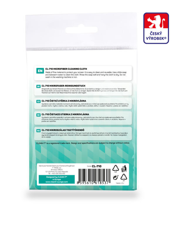 Čistící utěrka CLEAN IT je vyrobena z vysoce kvalitního mikrovlákna, které je speciálně navrženo pro efektivní a šetrné čištění citlivých povrchů. Je ideální pro čištění LCD, LED a plasmových obrazovek, stejně jako skleněných povrchů, jako jsou brýle, fot