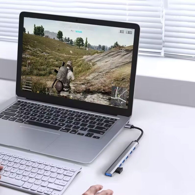 DeTech USB-C Hub s 7 porty USB 3.0 je praktické zařízení, které rozšiřuje možnosti připojení pro notebooky, tablety a další zařízení s USB-C portem. Díky modernímu designu a hliníkové slitině nabízí nejen odolnost, ale také stylový vzhled.