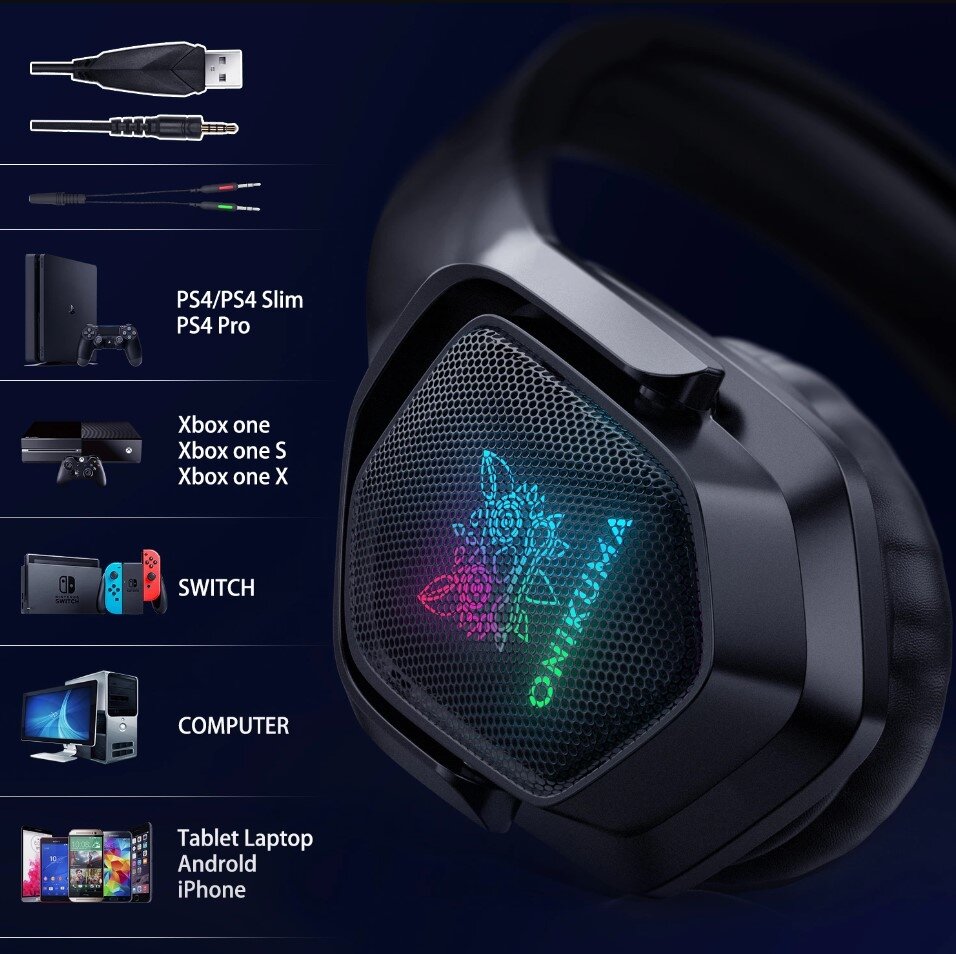 Herní sluchátka Onikuma X4, mikrofon a LED podsvícení, černá