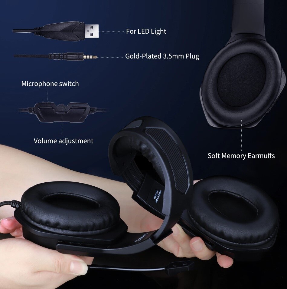Designová herní sluchátka s mikrofonem, LED podsvícením, drátová, s funkcí redukce šumu pro PC/PS4/XBOX