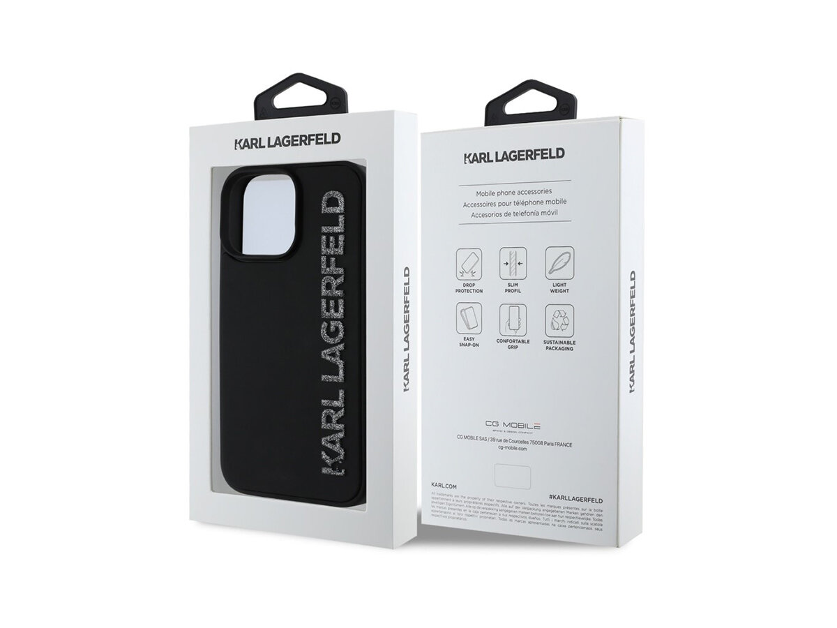 Karl Lagerfeld 3D Rubber Glitter Logo Zadní Kryt pro iPhone 15 Pro Černá