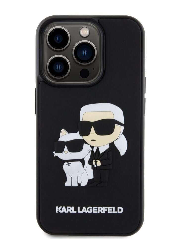 Karl Lagerfeld 3D Rubber Karl and Choupette Zadní Kryt pro iPhone 14 Pro Black
