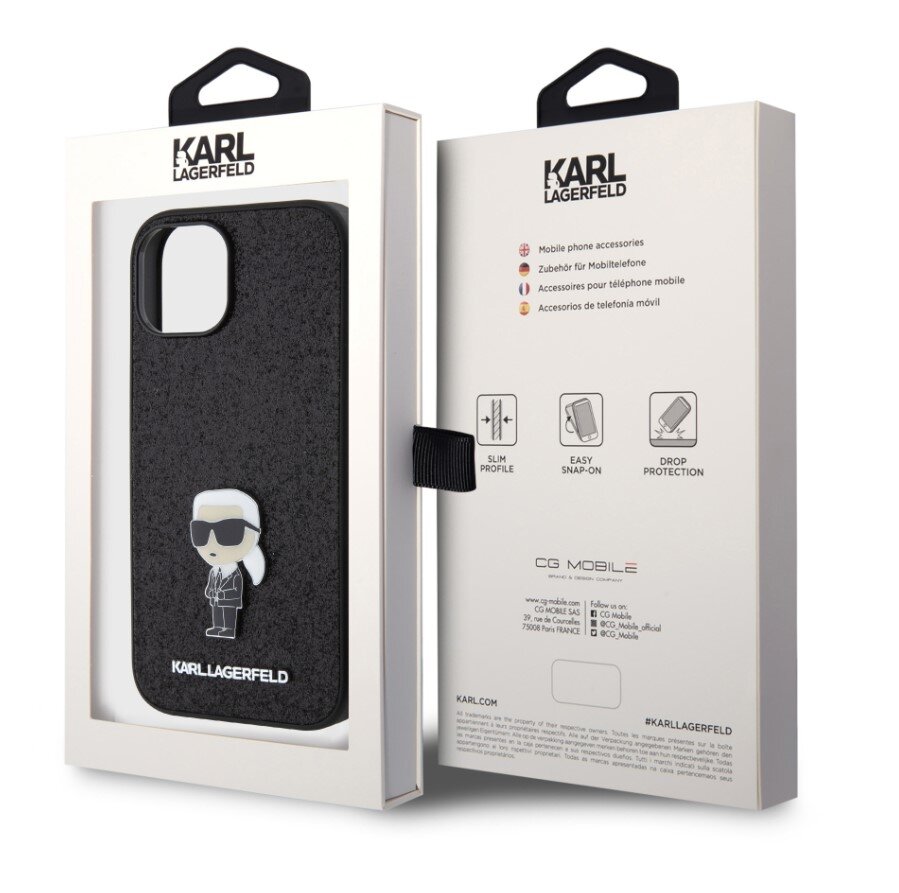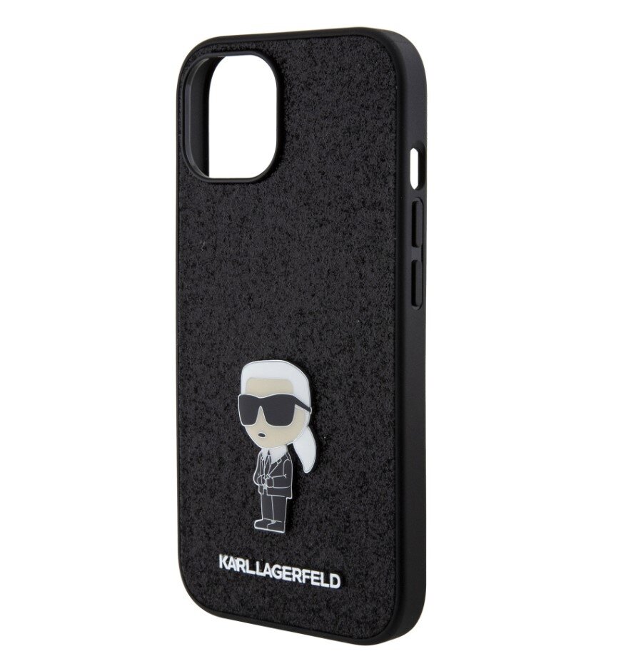Karl Lagerfeld Fixed Glitter Metal Ikonik Zadní Kryt pro iPhone 15 Černý