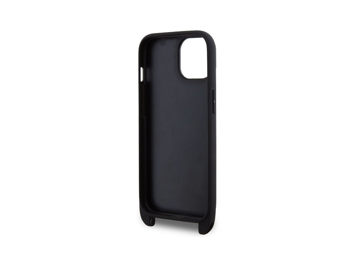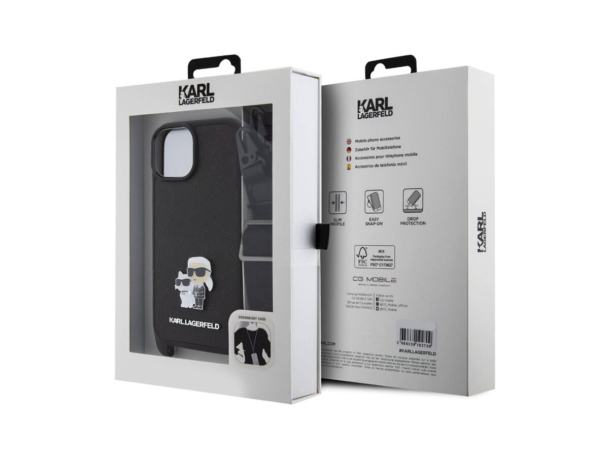 Karl Lagerfeld Saffiano Crossbody Popruh Metal Karl and Choupette Zadní Kryt pro iPhone 15 Černá