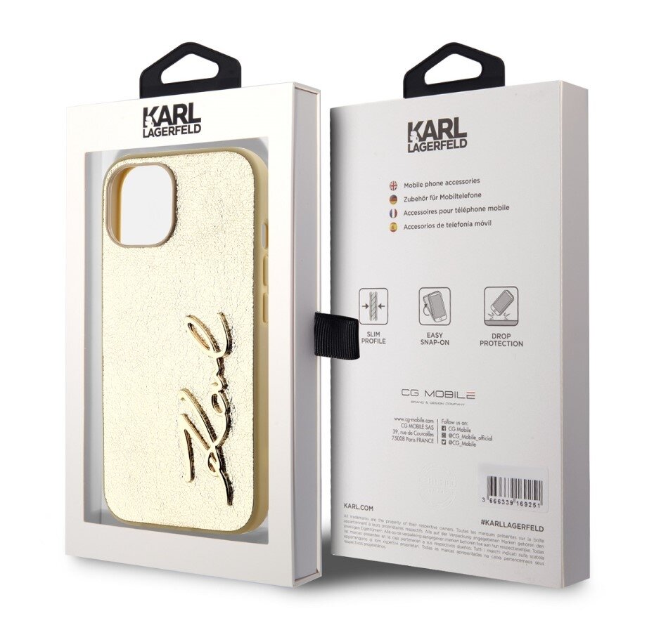 Karl Lagerfeld Wrinkled PU Signature Logo Zadní Kryt pro iPhone 15 Gold