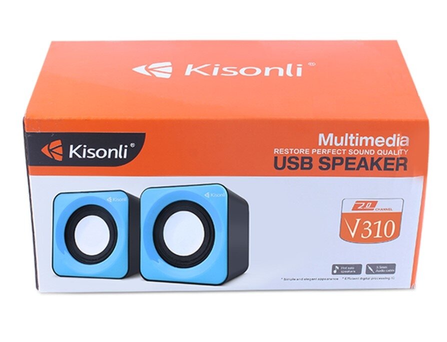 Kisonli V310 reproduktory jsou kompaktními reproduktory s napájením přes USB, ideálními pro poslech hudby z počítače, notebooku nebo jiného zařízení s USB portem.