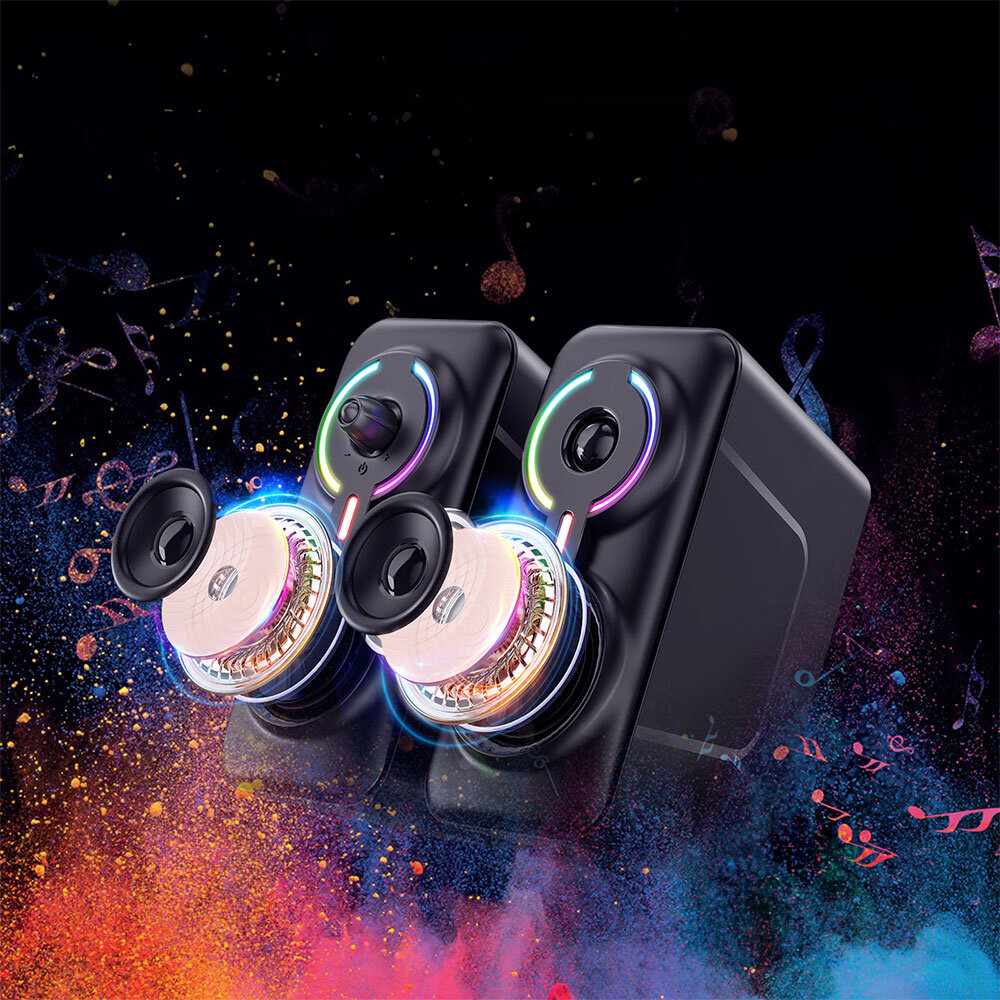 Reproduktory Onikuma jsou vybaveny RGB podsvícením. Je k dispozici v až 6 různých režimech, díky kterým si je zcela přizpůsobíte svým preferencím a navíc dokonale podtrhne herní charakter vašeho zařízení. Správa barevných režimů provádí pomocí tlačítka na reproduktoru. Vyjádřete svou náladu pomocí správného režimu!