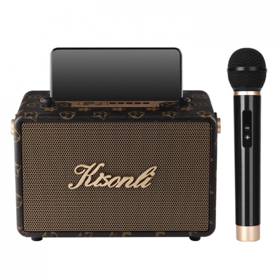 Reproduktor Kisonli G100, Karaoke, Bluetooth, USB, SD, AUX – hnědá