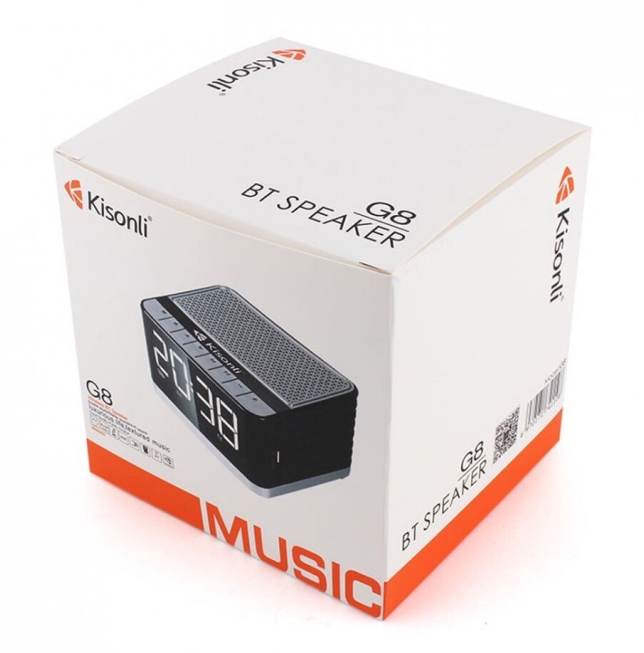 Reproduktor Kisonli G8, Bluetooth, Hodiny, USB, SD, FM, AUX, RGB – černá