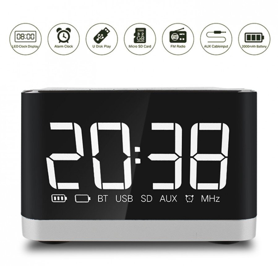 Reproduktor Kisonli G8, Bluetooth, Hodiny, USB, SD, FM, AUX, RGB