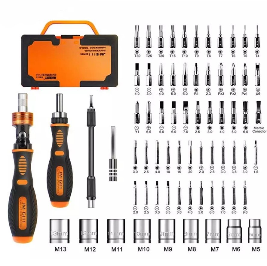 JAKEMY JM-6111 69 IN 1 Profesionální sada nářadí s otočnou ráčnou a prodlužovací lištou.