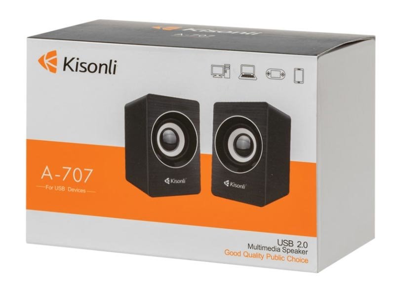 Reproduktory Kisonli se mohou pochlubit velmi stylovým designem, který se hodí i do moderně zařízených kanceláří nebo pokojů. Jedná se o provedení 2.0, které představuje dva přenosné satelity s výkonným subwooferem a špičkovým výkonem pro Váš počítač, notebook nebo dokonce i televizor. Ani po výkonové stránce reproduktory Kisonli A-707 ve své kategorii nezaostávají. Naopak. Celkový výkon reproduktorů a subwooferu činí velice slušných 6W. Oba satelitní reproduktory poskytují výkon 2x 3 W.