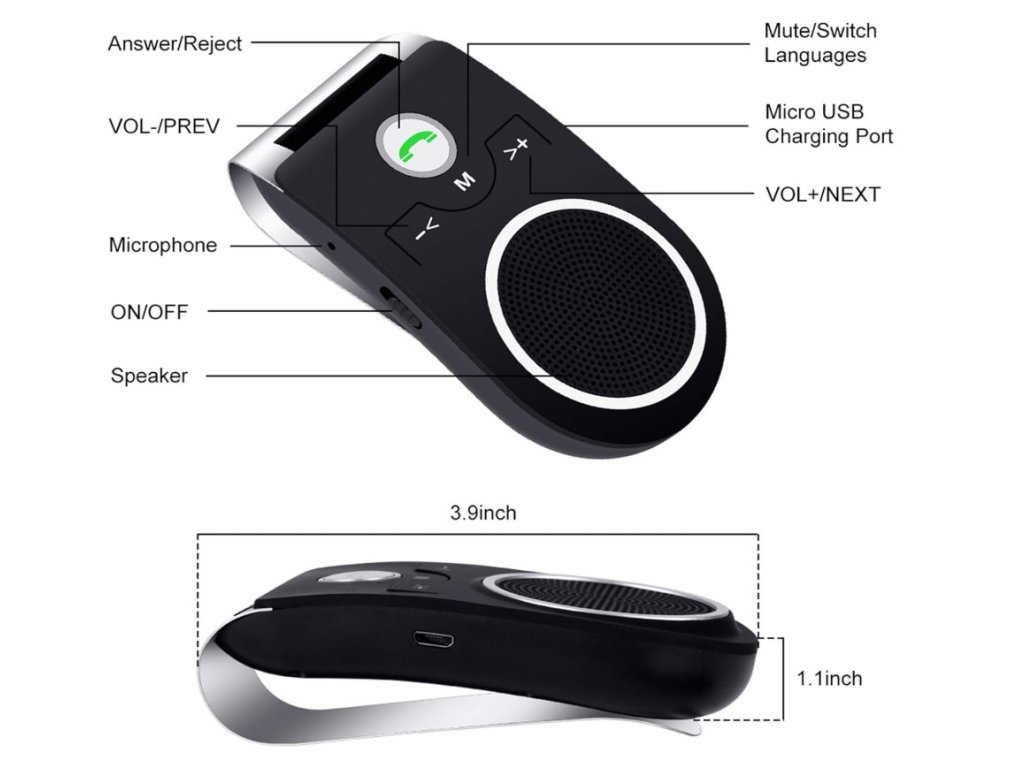 Bluetooth handsfree mikrofon do auta je praktické zařízení, které umožňuje hands-free komunikaci během řízení. Díky podpoře Bluetooth 4.1 + EDR poskytuje spolehlivé připojení a dlouhou výdrž baterie, ideální pro profesionální řidiče i běžné uživatele.