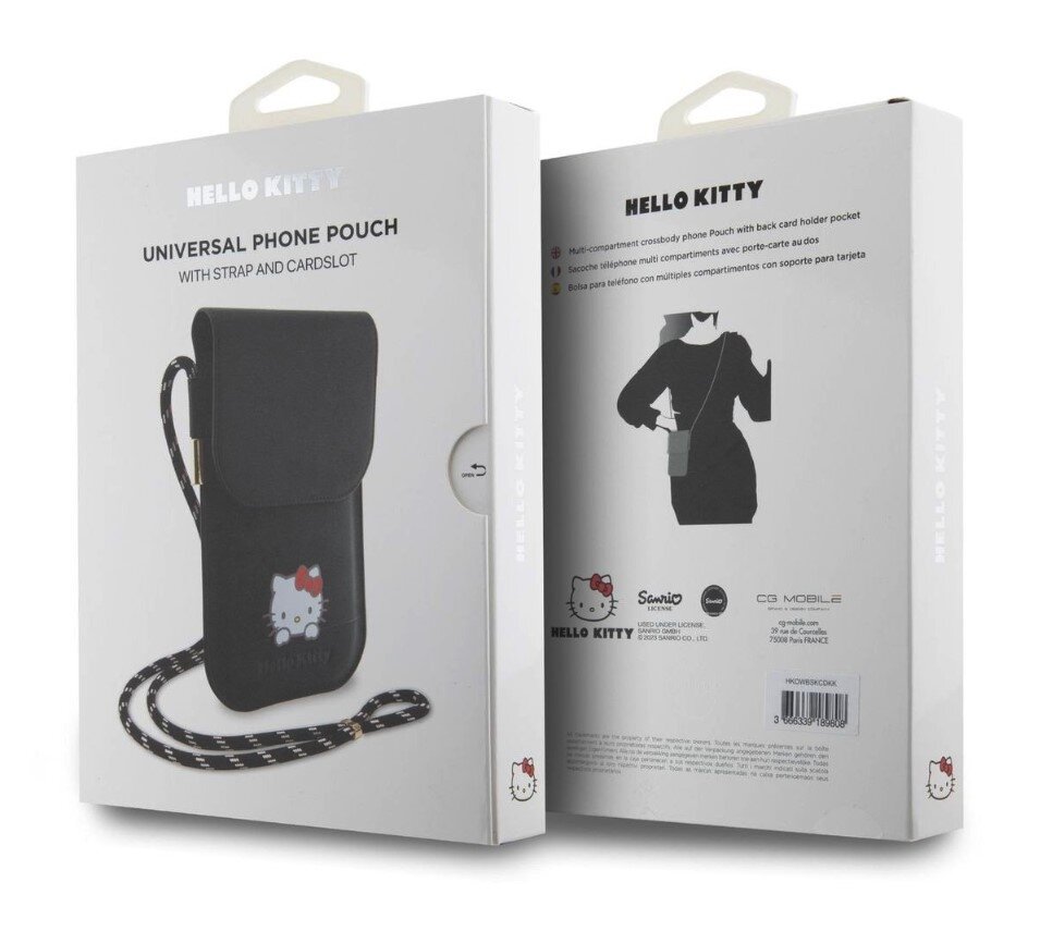 Představujeme vám stylovou Hello Kitty tašku na telefon a peněženku, která je ideálním společníkem na cestách a skvělým doplňkem pro váš outfit. Tato taška je vyrobena z kvalitní hladké PU kůže, potištěná logem Hello Kitty, a obsahuje nylonovou crossbody šňůrku pro snadné nošení. Je perfektní pro ochranu vašeho telefonu a dalších drobností.