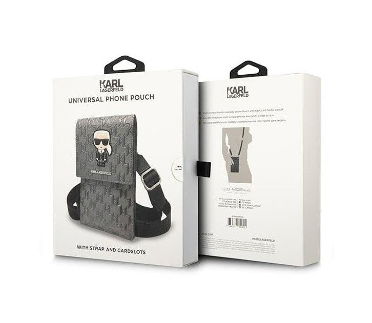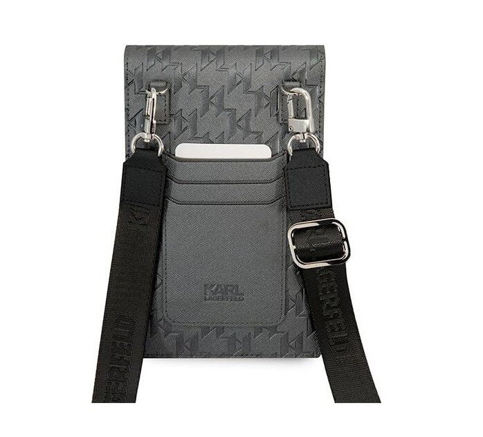 Luxusní ochranné pouzdro Karl Lagerfeld Wallet určené pro smartphone, platební karty, peněženku a jiné drobnosti. Díky nastavitelnému popruhu jej můžete pohodlně nosit přes rameno a mít důležité věci neustále u sebe. Je vyrobeno z EKO kůže, zatímco vnitřní část je vyztužena příjemnou stélkou, která je příjemná na dotek.