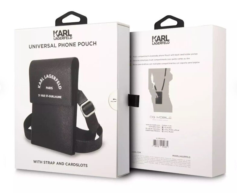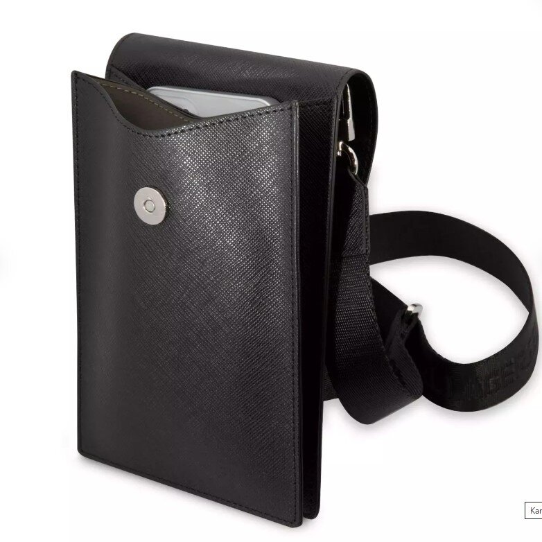 Módní a stylová kabelka na váš telefon – to je nejnovější nabídka přímo od známého a uznávaného designéra Karla Lagerfelda. Pro vaše pohodlí byla vytvořena kabelka nejen s vysokou funkčností, ale také efektním a exkluzivním vzhledem. Pouzdro je zdobeno emblémem, díky kterému je tato kabelka na mobil must have pro každého, kdo si potrpí na módu a netradiční rockový vzhled.