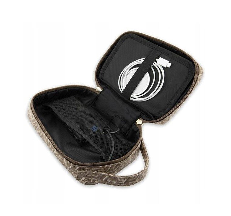 Vnitřek tašky je mimořádně funkční - četné přihrádky umožňují pohodlné uložení potřebného drobného příslušenství. Kabelka má externí port zakončený USB konektorem a vnitřek brašny ukrývá kabel zakončený USB konektorem.