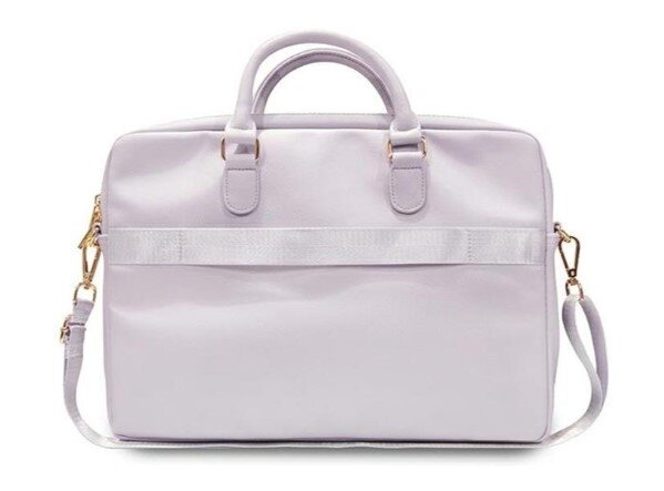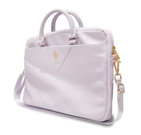 Taška na notebook Guess Triangle 4G v fialové barvě spojuje elegantní design s praktickou ochranou, poskytující stylové řešení pro nošení a ochranu vašeho notebooku.