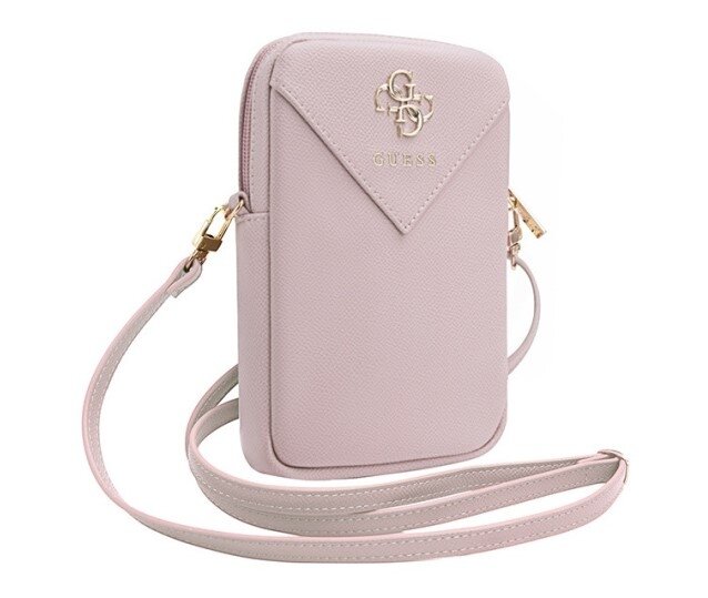 Kožená kabelka na telefon Guess ZIP 4G Triangle Pink spojuje sofistikovaný design s praktickou funkcionalitou, vyjadřujíc vaši náklonnost k módnímu domu Guess a chrání váš telefon s elegancí.
