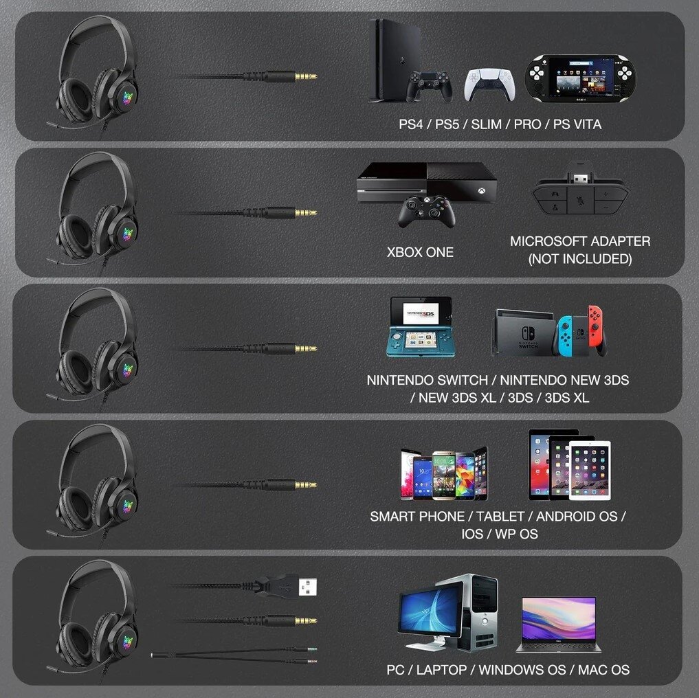 Designová herní sluchátka s mikrofonem, LED podsvícením, drátová, s funkcí redukce šumu pro PC/PS4/XBOX