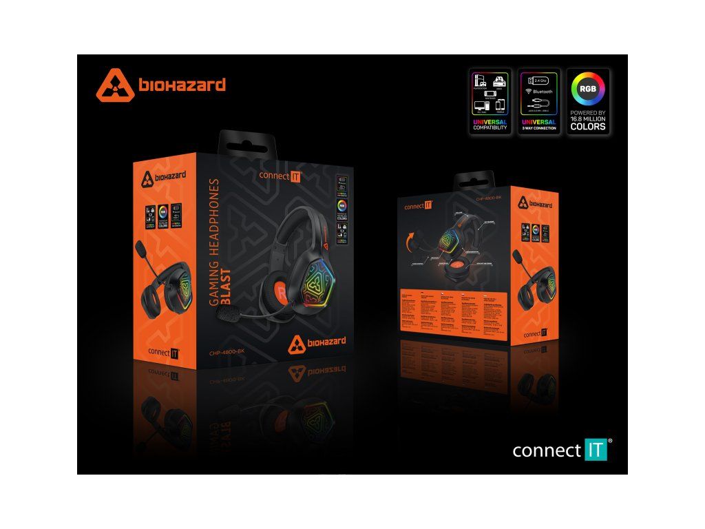 Connect IT Biohazard Blast herní bezdrátová sluchátka s mikrofonem, 1xJack+USB - černá