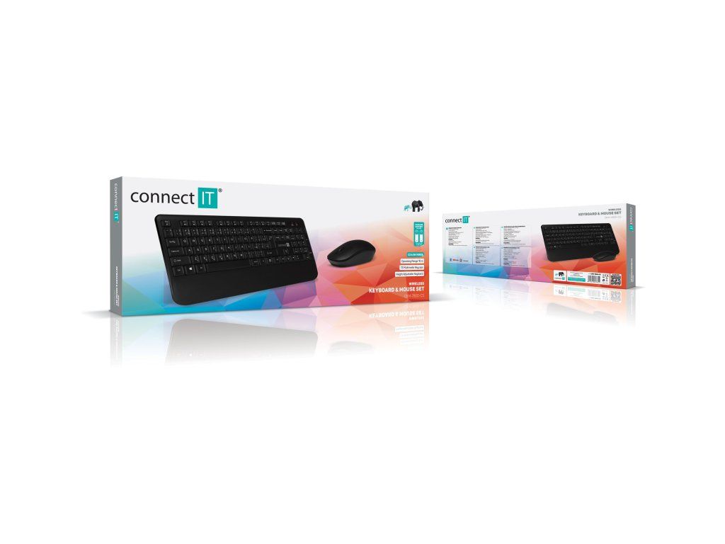 Connect IT Combo bezdrátová klávesnice + myš (+1x AAA +1x AA baterie) CZ/SK – černá