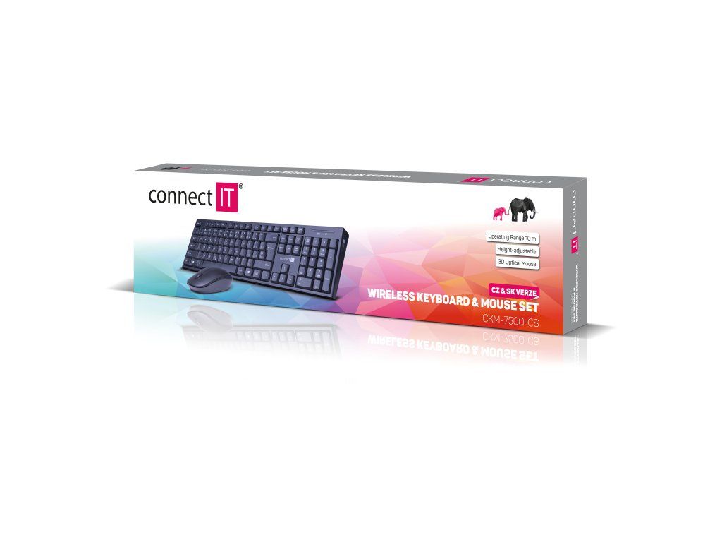 Connect IT Combo bezdrátová klávesnice + myš (+1x AAA +1x AA baterie) CZ/SK – černá