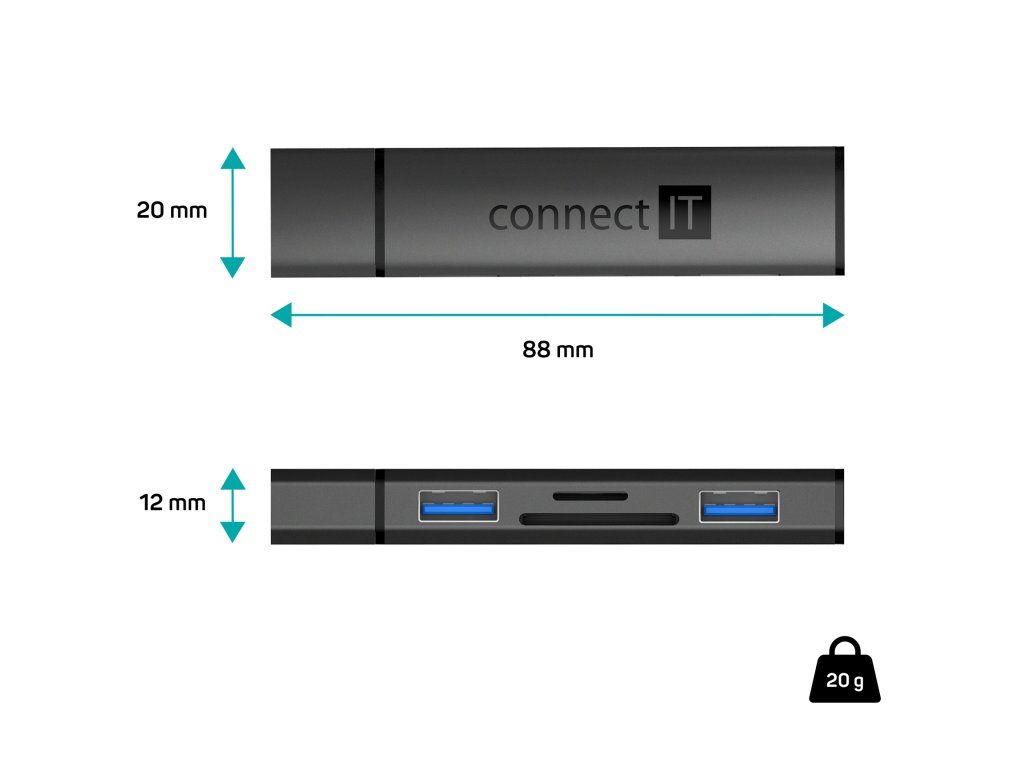 Malý pomocník s velkým výkonem. Connect IT Compact 4v1 je praktický USB-A 3.0 hub s čtečkou karet, který rozšíří vaše zařízení o 2 USB porty a čtečku SD/microSD. Je ideálním řešením pro uživatele, kteří chtějí efektivně připojit další zařízení a přenášet data bez nutnosti dalších ovladačů.