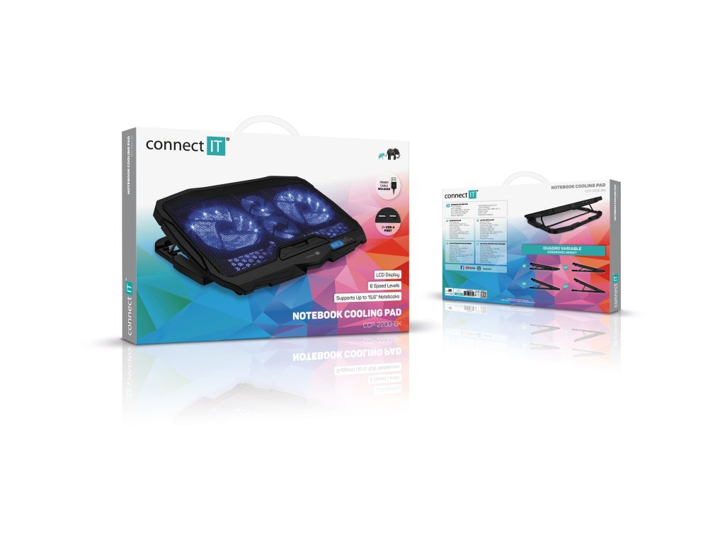 Connect IT FrostWind chladicí podložka pod notebook s modrým podsvícením – černá