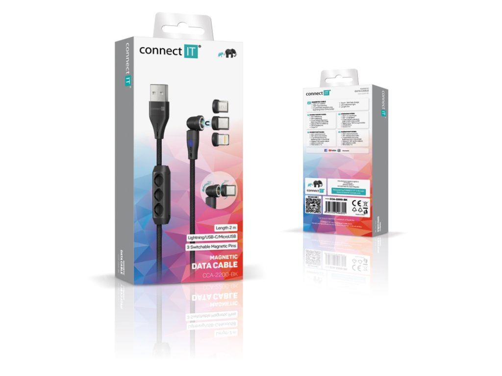Praktické 3v1 řešení pro každé zařízení – kabel Connect IT Magnetic PowerLink nabízí tři vyměnitelné magnetické konektory, podporu rychlého nabíjení a přenosu dat. Ideální pro použití doma, v autě i na cestách.