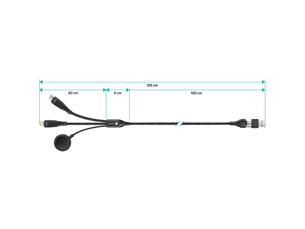 Connect IT Wirez Datový kabel 6v1, 1x USB-C 1x Lightning 1x Watch charger 1.25 m - černá