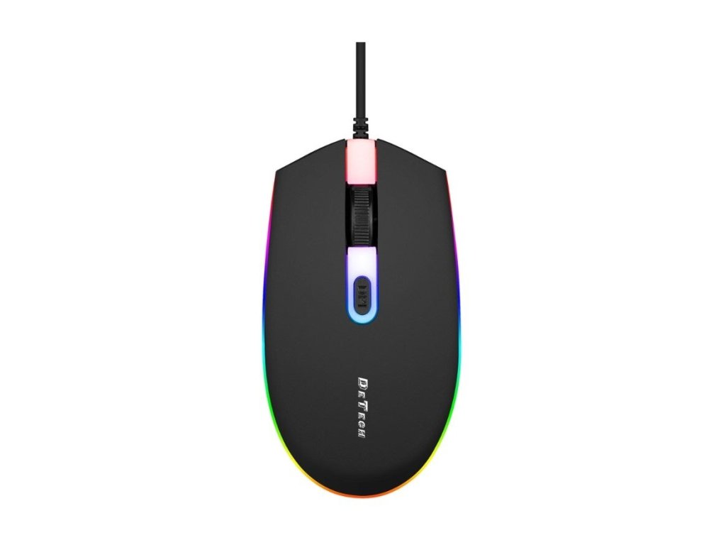 DeTech D6 drátová herní myš - Optická, Černá