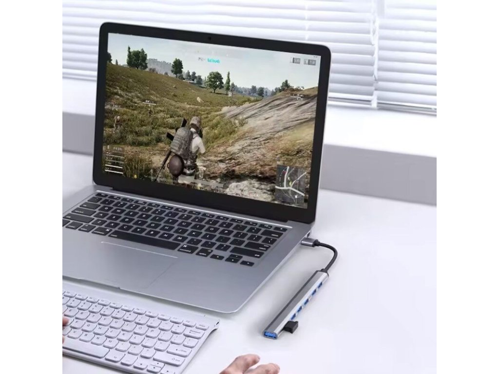 DeTech USB-C Hub s 7 porty USB 3.0 je praktické zařízení, které rozšiřuje možnosti připojení pro notebooky, tablety a další zařízení s USB-C portem. Díky modernímu designu a hliníkové slitině nabízí nejen odolnost, ale také stylový vzhled.