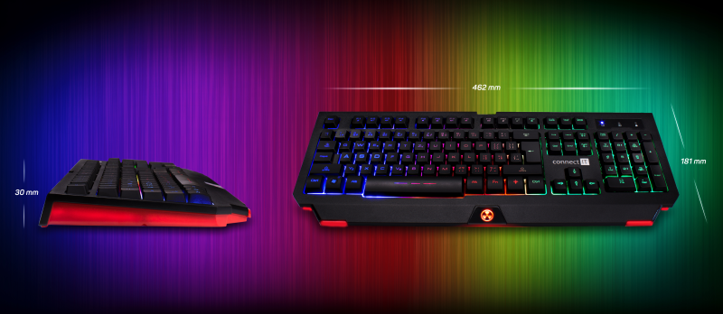 Stylová herní klávesnice s RGB podsvícením a funkcemi pro maximální zážitek ze hry. CONNECT IT BATTLE RNBW je navržena pro všechny hráče – od začátečníků po profesionály. Její klasické rozložení kláves v kombinaci s barevným podsvícením vám umožní ponořit se do herního světa i za zhoršených světelných podmínek. Díky 12 multimediálním tlačítkům a 19 Anti-ghost klávesám budete mít vždy plnou kontrolu nad hrou i médiemi.