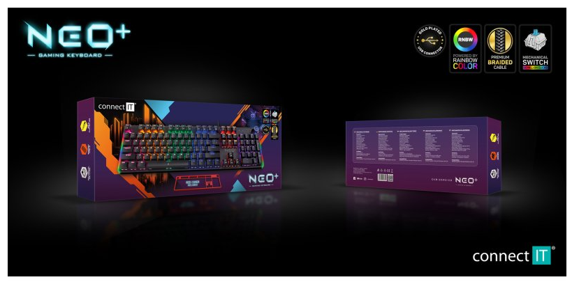 Profesionální výbava pro každého hráče – herní mechanická klávesnice Connect IT NEO2+ (CKB-3592-CS) přináší výborný poměr mezi výkonem, designem a odolností. S českým a slovenským rozložením kláves a mechanickými spínači s životností až 50 milionů stisků je ideální pro náročné herní i pracovní nasazení.