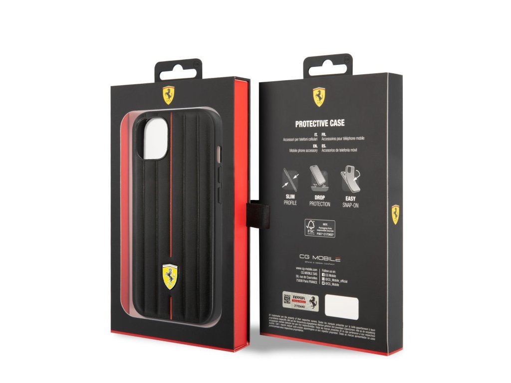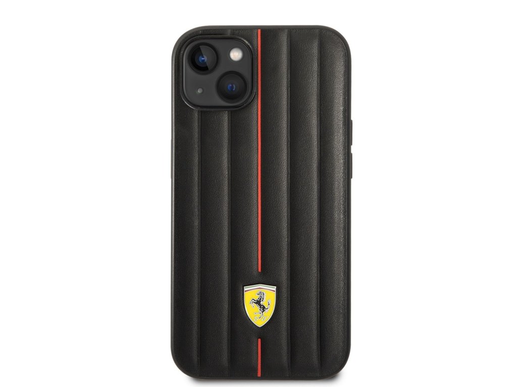Ferrari Leather Embossed Stripes Zadní Kryt pro iPhone 14 Black