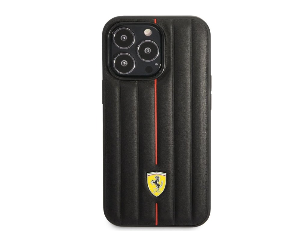 Ferrari Leather Embossed Stripes Zadní Kryt pro iPhone 14 Pro Max Black