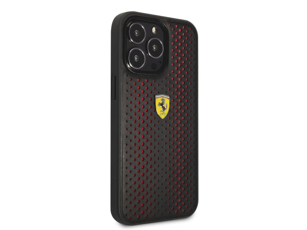 Ferrari PU Leather Perforated Zadní Kryt pro iPhone 14 Pro Red