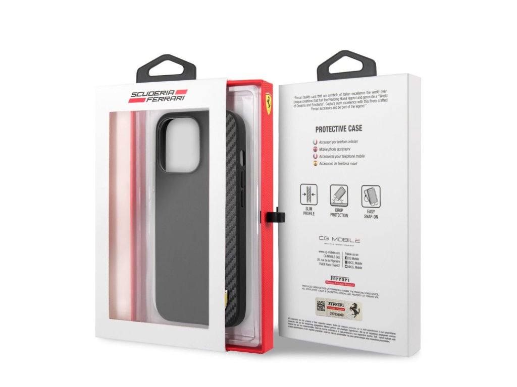 Ferrari Smooth and Carbon Effect Zadní Kryt pro iPhone 13 Pro Black