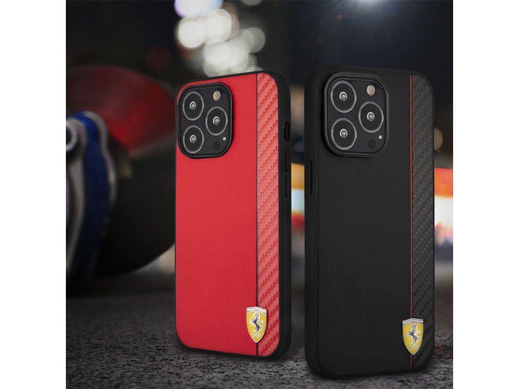 Ferrari On Track Stripe Carbon prémiový kryt vyrobený v kombinaci pružného PU materiálu a stylového karbonového pruhu na zadní straně.