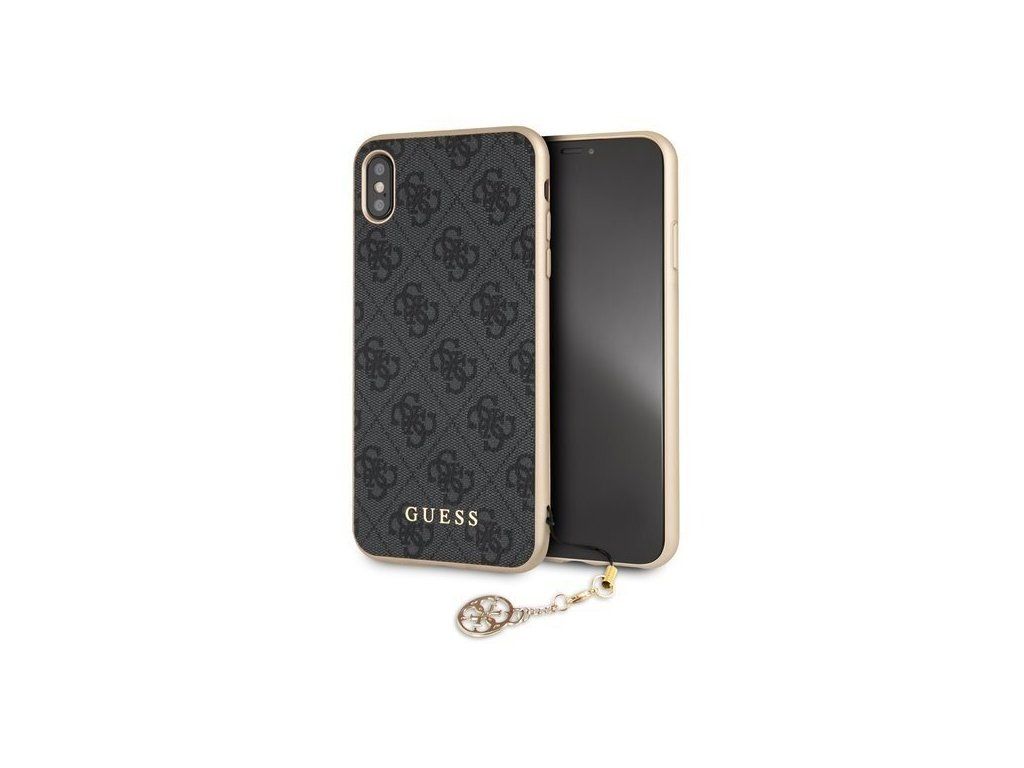 Guess 4G Charms prémiový ochranný kryt telefonu v kombinaci zadní strany s potažená látkou s motivem Guess, pružnými PU boky a atraktivním přívěskem.