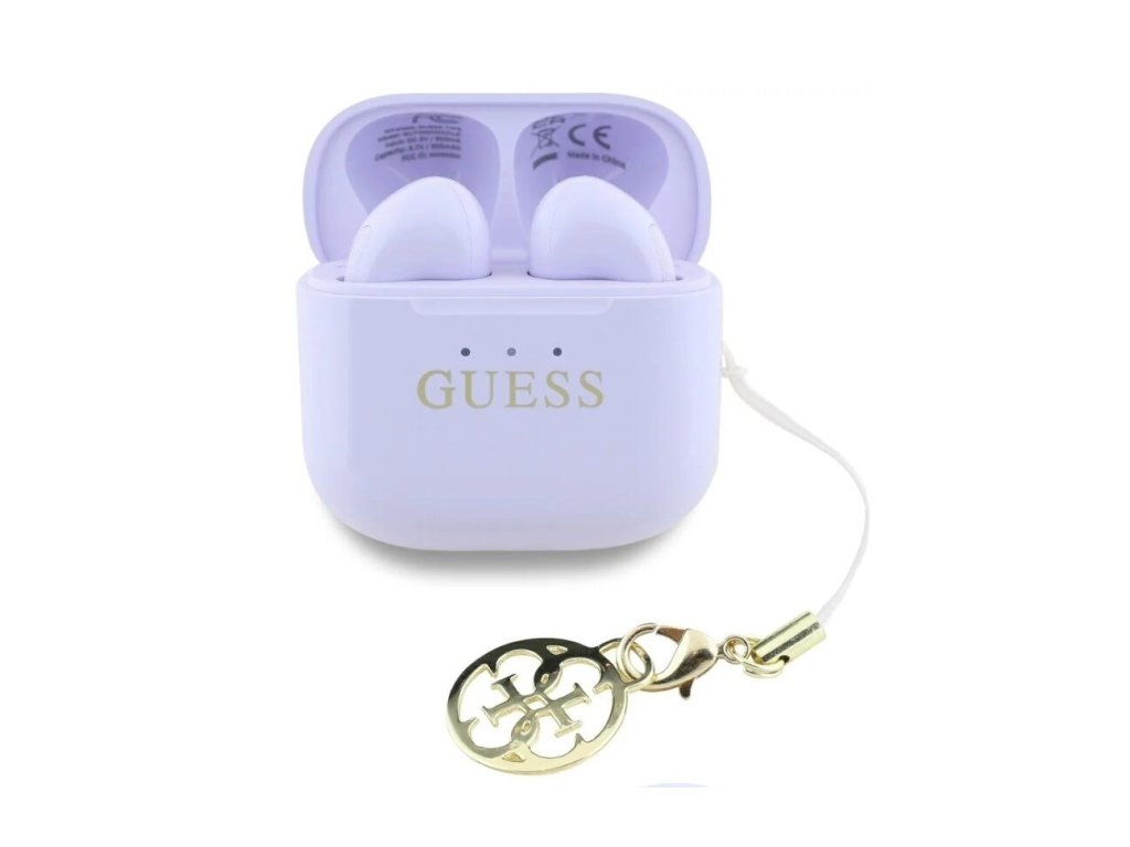 Guess Classic Logo Charm TWS Bezdrátová Sluchátka Fialová