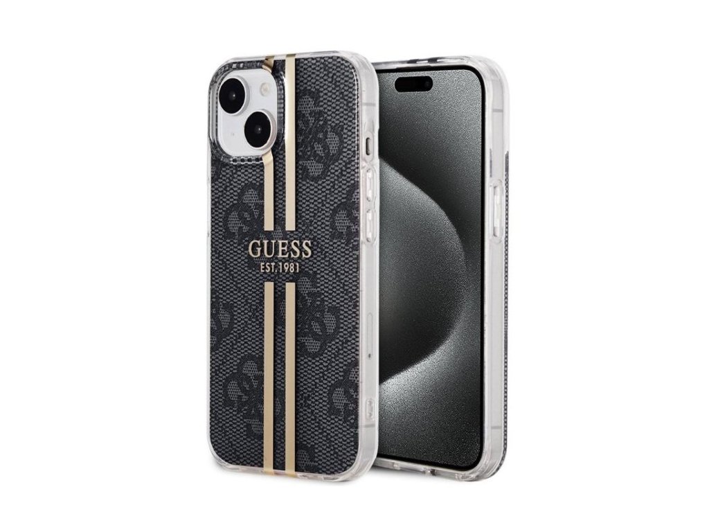 Guess IML 4G Gold Stripe Zadní Kryt pro iPhone 15 Black