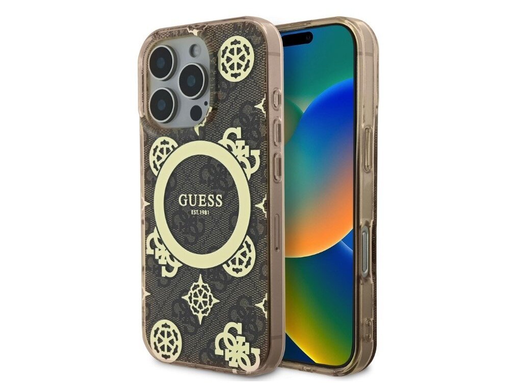 Guess IML 4G Peony MagSafe Zadní Kryt pro iPhone 16 Pro Brown